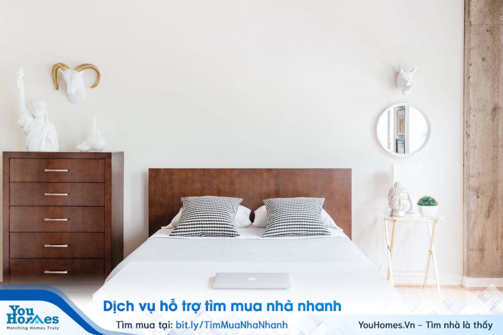 - Thiết kế phòng ngủ nên tối giản, hoặc bạn có thể sử dụng những đồ dùng tích hợp để vừa có nơi để đồ tối ưu vừa tiết kiệm không gian. Nhung chi phí của chúng không phải rẻ, bạn nên cân nhắc trước khi mua.