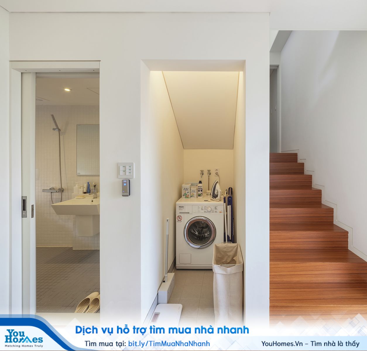 - Cầu thang gọn gàng và vuông vắn sẽ đem tới cảm giác hiện đại và tiết kiệm. Hơn nữa bạn có thể xây thêm những gờ dùng để đựng đồ và trang trí