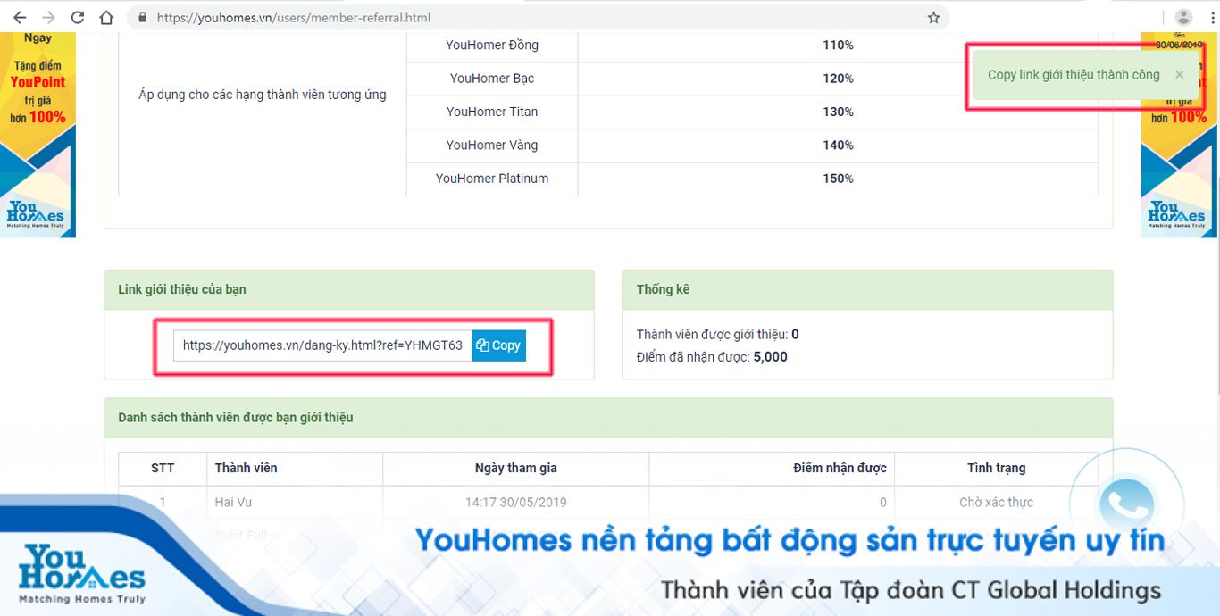 Hướng dẫn YouHomers gửi mã giới thiệu - nhận điểm thưởng