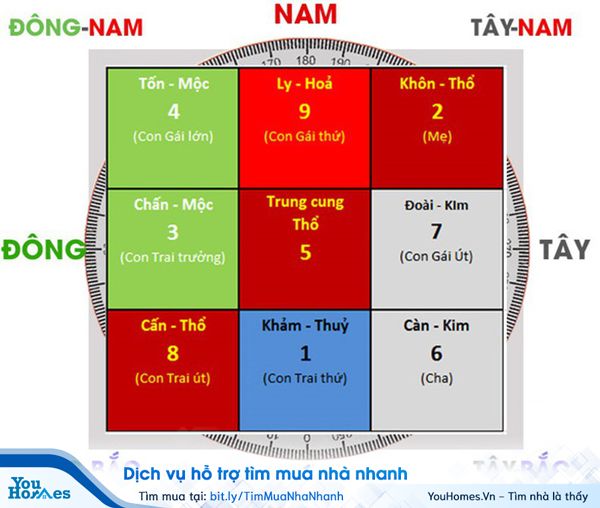 Sau khi tìm được X hoặc Y, tra thông số trong đồ hình Lạc Thư để biết người đó phi cung gì và thuộc Đông tứ mệnh hay Tây tứ mệnh.