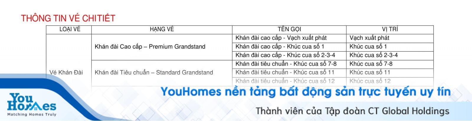 Không chỉ có ghế ngồi riêng với tầm nhìn vô cùng thuận lợi, vé Khán đài còn mang đến nhiều sự lựa chọn cho khách hàng với 3 hạng khác nhau bao gồm hạng vé khán đài cao cấp, hạng vé khán đài tiêu chuẩn và hạng vé khán đài tự do. Chắc chắn, đây là loại vé không thể bỏ lỡ dành cho những fan hâm mộ chân chính của môn thể thao tốc độ này.