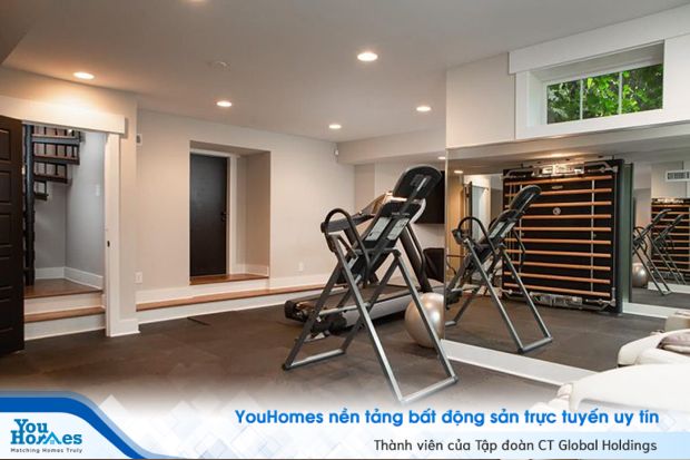 Căn nhà được trang bị đầy đủ cả phòng xông hơi khô và phòng tập thể dục trong nhà.
