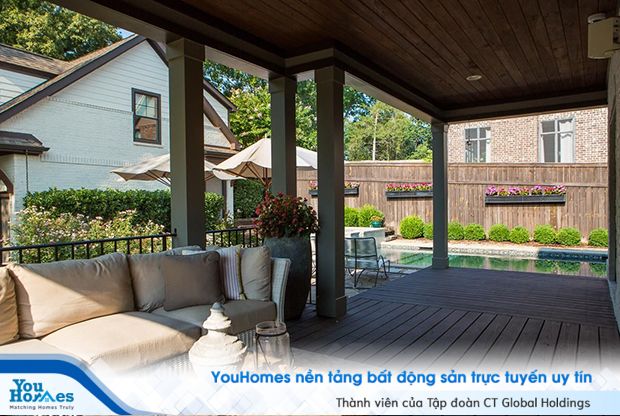 Bên ngoài, hiên nhà dẫn ra khu vực sân sau tuyệt đẹp.