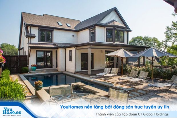 Ngôi nhà được xây dựng lại vào năm 2012 có diện tích gần 500m2, gồm 4 phòng ngủ và 5 phòng tắm rộng rãi.