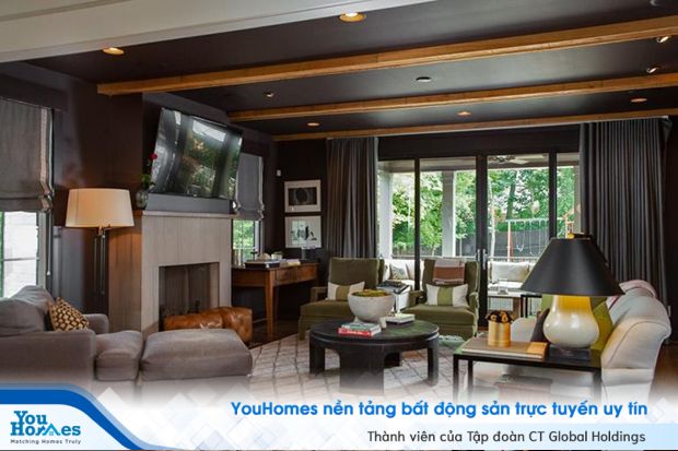 Phòng khách thứ ba có những đường nét sạch sẽ và một bảng màu đơn điệu, tạo ra một sự rung cảm ấm cúng hơn so với những không gian quyến rũ khác.