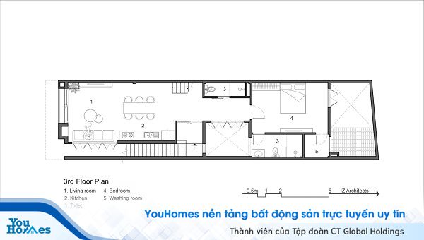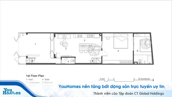 Ngôi nhà có diện tích 5m x 20m khá quen thuộc ở Việt Nam, nó được hình thành với ý tưởng về một ngôi nhà nhiệt đới, trong đó không gian và các vật liệu có thể chịu được khí hậu khắc nghiệt ở Đà Nẵng, Miền Trung Việt Nam.