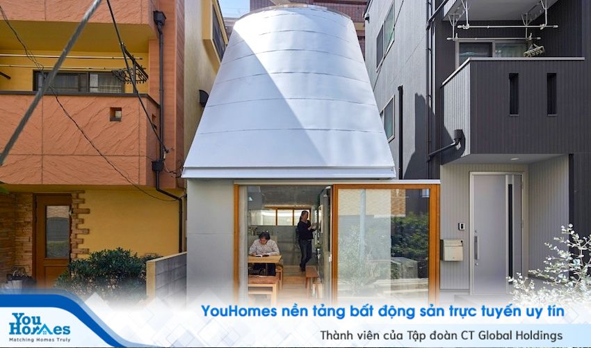Căn nhà tọa lạc tại Tokyo, lọt thỏm giữa hai ngôi nhà lớn bên cạnh với không gian chưa đầy 20m2 của một cặp vợ chồng.