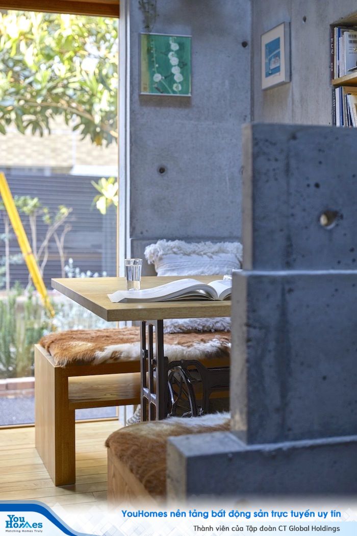 Những vách ngăn nhỏ bằng xi măng chia không gian nhà thành phòng ăn, nhà bếp, phòng ngủ và phòng tắm. Nó đáp ứng nhu cầu cơ bản của cuộc sống và xây dựng một ngôi nhà nhỏ và hoàn chỉnh.