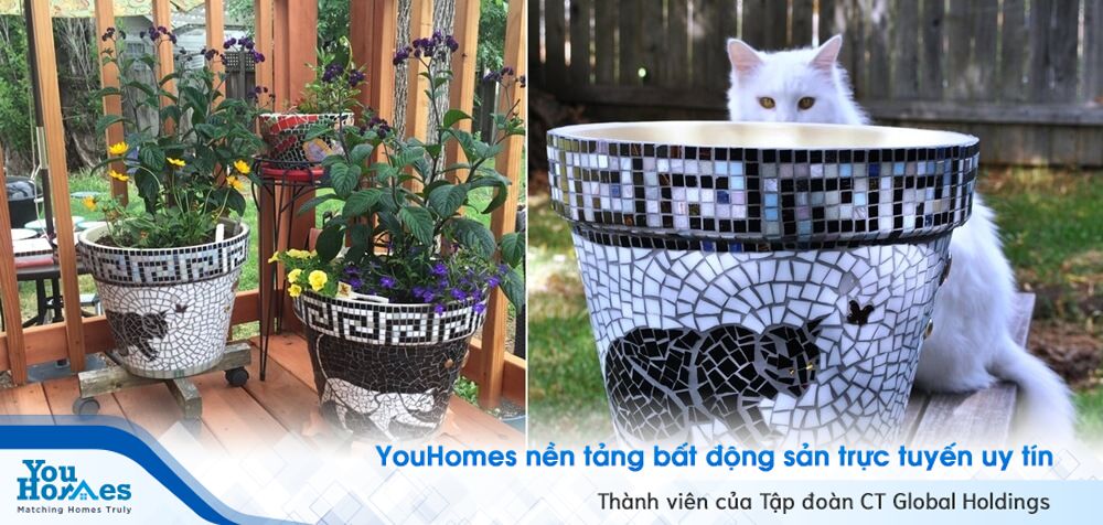Chậu cây bằng đất nung với diện mạo mới từ những mảnh ghép.