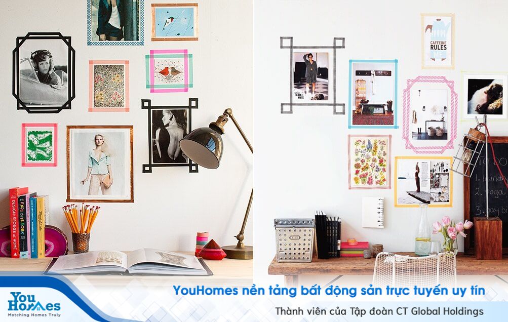 Những khung hình độc đáo tạo điểm nhấn ấn tượng cho bức tường.