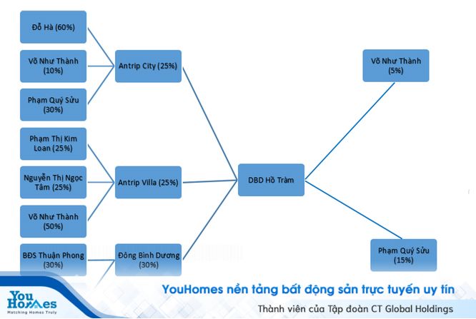 Công ty DBD Hồ Tràm bao gồm 3 cổ đông tổ chức là Công ty TNHH Phát triển đô thị Đông Bình Dương nắm 30%, Công ty CP Antrip City nắm 25%, Công ty CP Đầu tư Antrip Villa nắm 25%