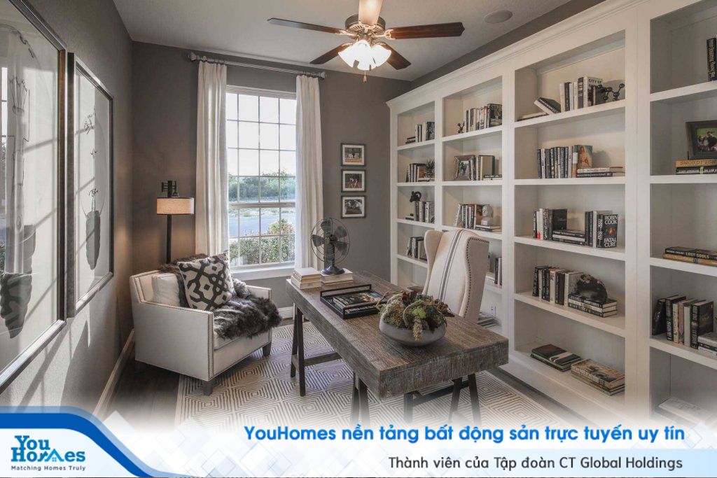 Không gian lưu trữ tích hợp không chỉ giữ cho không gian làm việc của bạn được ngăn nắp mà còn có tác dụng trang trí, giúp nhà bạn thêm ấn tượng. Sử dụng những gam màu nhẹ nhàng tạo cảm giác thư thái cho không gian của phòng làm việc.