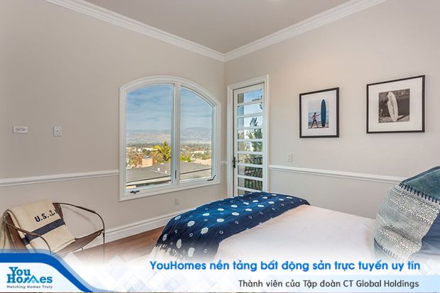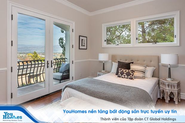 Một bảng màu trung tính êm dịu làm cho phòng ngủ ấm cúng này trở thành nơi nghỉ ngơi thư giãn.