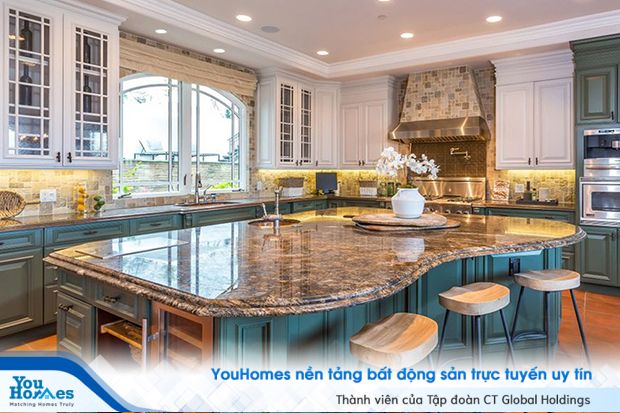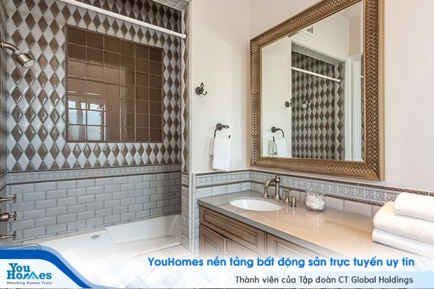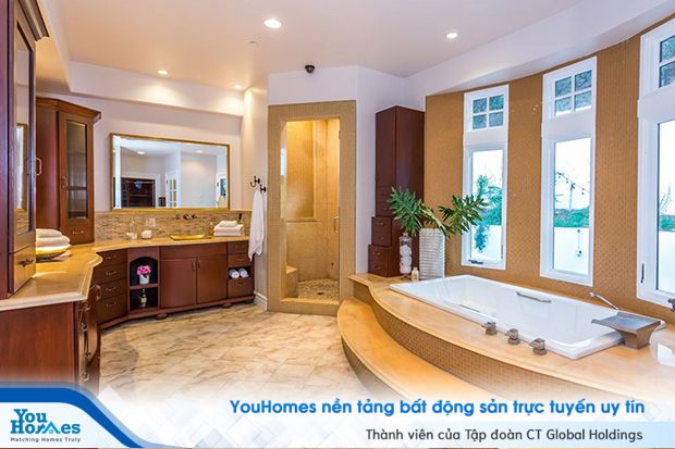 Phòng tắm sang trọng đầy đủ tiện nghi, chủ nhân thoải mái ngâm mình trong bồn tắm kiểu bể sục.