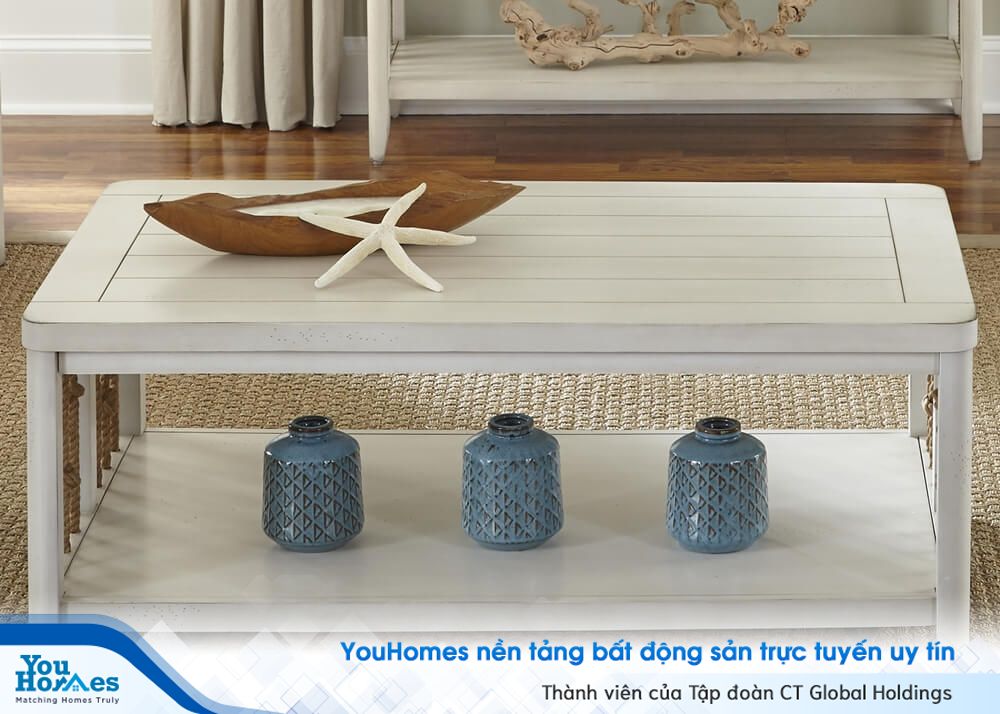 Biển luôn là nguồn cảm hứng vô tận cho các nhà thiết kế, mang lại sự tươi mới cho bất kỳ không gian nào. Với những chiếc bàn cà phê trong phòng khách, bạn có thể sử dụng gỗ tái chế và những đồ vật trang trí mang hơi thở của biển cả.