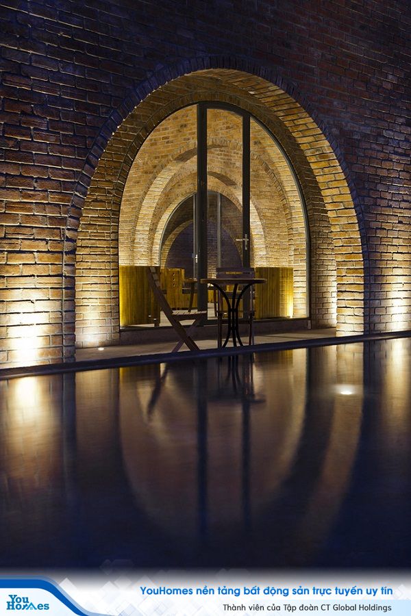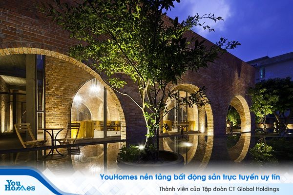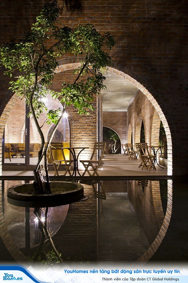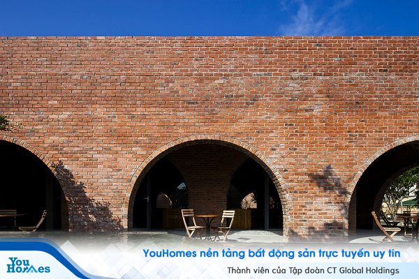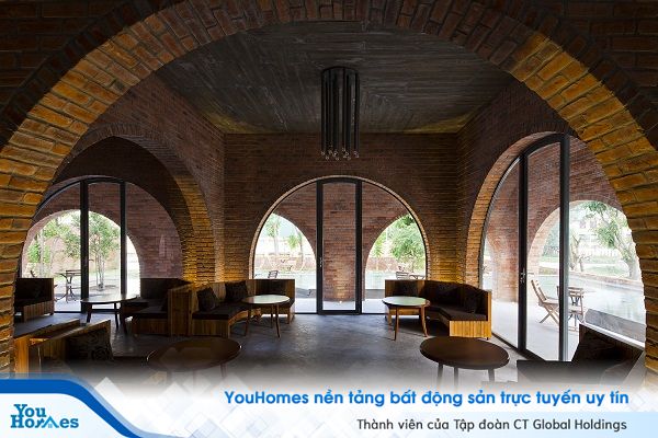 Không gian quán café được tạo thành từ 24 vòm gạch sử dụng ngôn ngữ hình ảnh độc đáo nhằm truyền tải cách chúng ta tập trung để tạo ra không gian kiến trúc. Hơn nữa, công trình được xây dựng theo cấu trúc này còn mang đến giải pháp tiết kiệm chi phí.