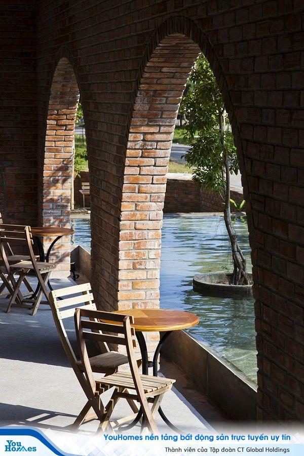 Lấy ý tưởng từ sự gần gũi của cổng làng ở miền quê Việt Nam và các cung điện cổ xưa, không gian chính của quán - ngay bên cạnh hồ nước - được thiết kế gồm 24 cổng vòm bằng gạch đỏ, sản xuất tại địa phương. Du khách tới đây, có thể thưởng thức cà phê bên những chiếc cổng vòm cong cong, duyên dáng.