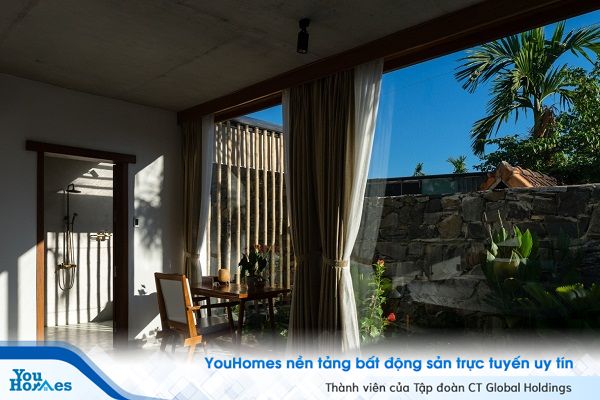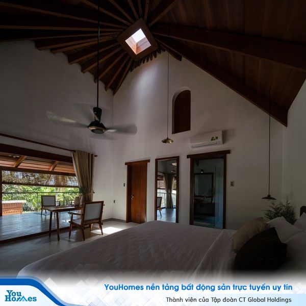 Khu vực sinh hoạt chung được bố trí bên ngoài, trong khi không gian bên trong được dành để nghỉ ngơi. Đồng thời cả hai không gian đều được kết nối liền mạch với thiên nhiên xung quanh.