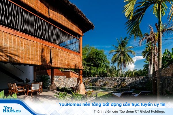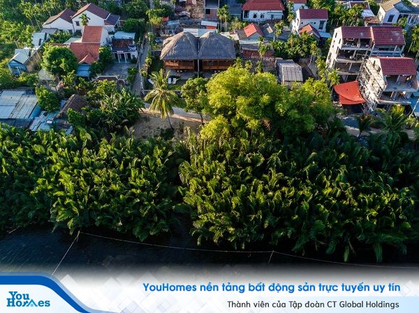 Hiện trạng xung quanh biệt thự ban đầu vẫn còn hoang sơ và chưa có phát triển đồng đều, bao quanh có nhiều cây dừa nước, một loại cây đặc trưng của khu vực này.
