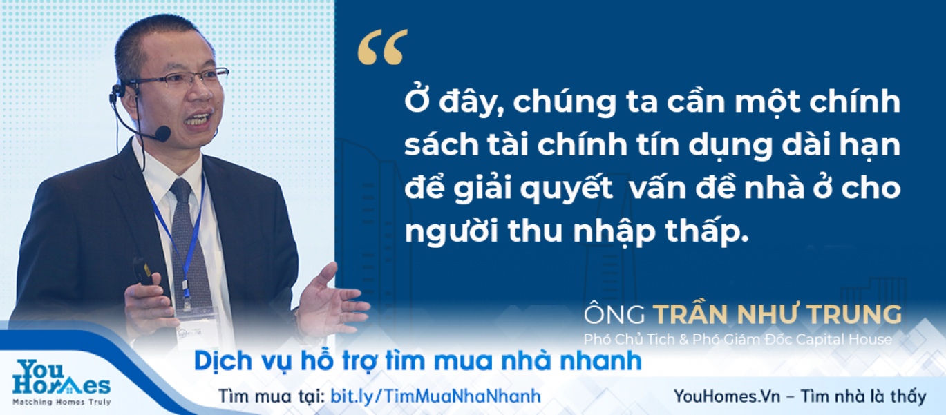 Ông Trung cho biết những đơn vị phát triển nhà thu nhập thấp như Capital House đang phải đối mặt với một nghịch lý là đã có dự án, có đối tác và thấy rất rõ tiềm năng lớn từ nhu cầu thị trường nhưng lại gặp khó khi không thể thu xếp được tài chính cho người mua. “Ở đây, chúng ta cần một chính sách tài chính tín dụng dài hạn để giải quyết vấn đề nhà ở cho người thu nhập thấp", ông Trung nhấn mạnh.