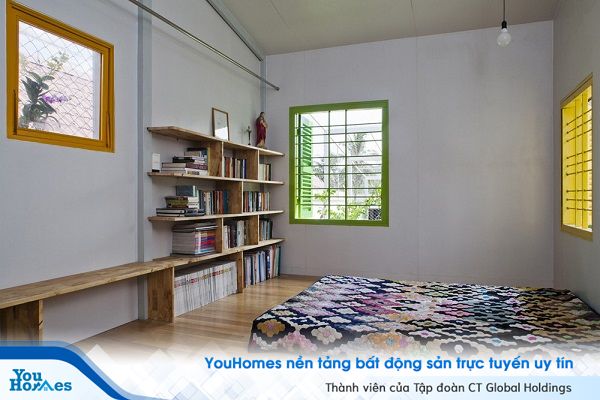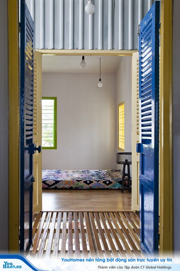 Sử dụng những thanh gỗ làm sàn giúp căn phòng thoáng hơn kết hợp với những gam màu nổi bật để tạo điểm nhấn cho căn phòng.