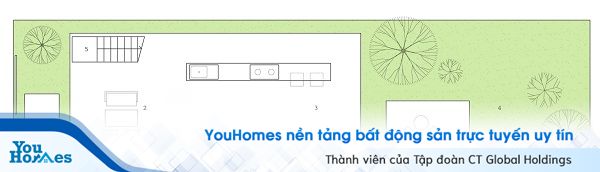 Ngôi nhà được chia làm 2 phần, phần 1 là không gian riêng tư nằm ở tầng 1 gồm 2 phòng ngủ, phần 2 là không gian mở kết nối với sân vườn từ trong ra ngoài gồm có phòng khách và bếp.
