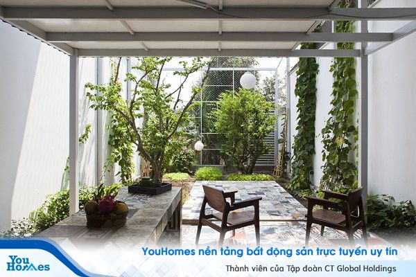 Xung quanh nhà được trồng các loại cây giúp căn nhà xanh mát hơn.
