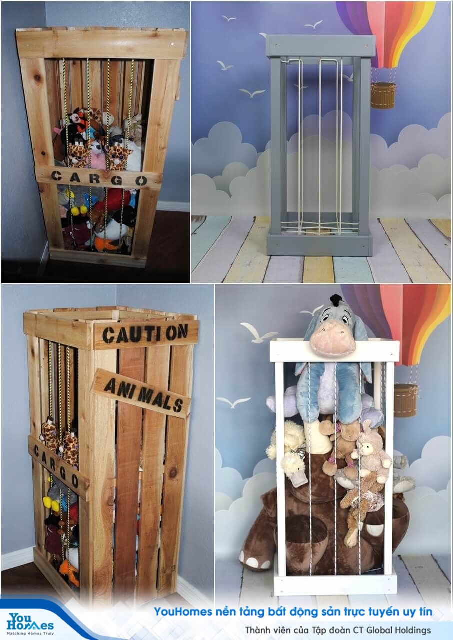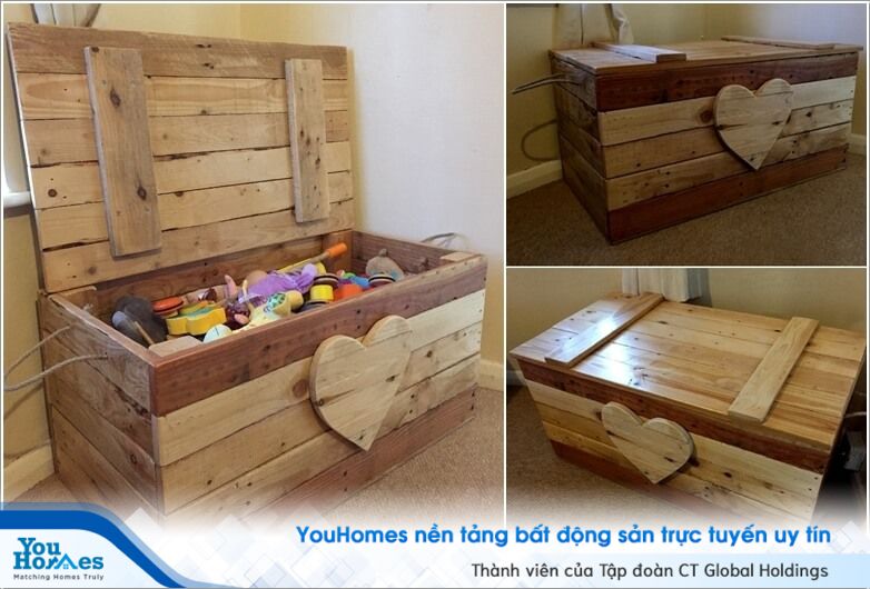 Chiếc hộp thần kỳ chứa đầy đồ chơi của bé được đóng bằng những thanh gỗ. Để tạo thêm sự đáng yêu cho chiếc hộp thần kỳ có thể gắn các hình như trái tim, ngôi sao,...