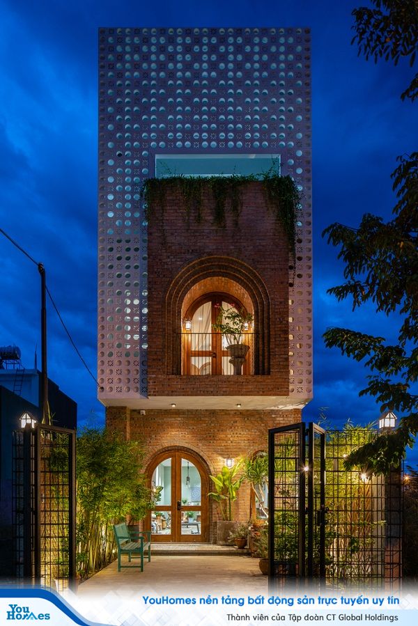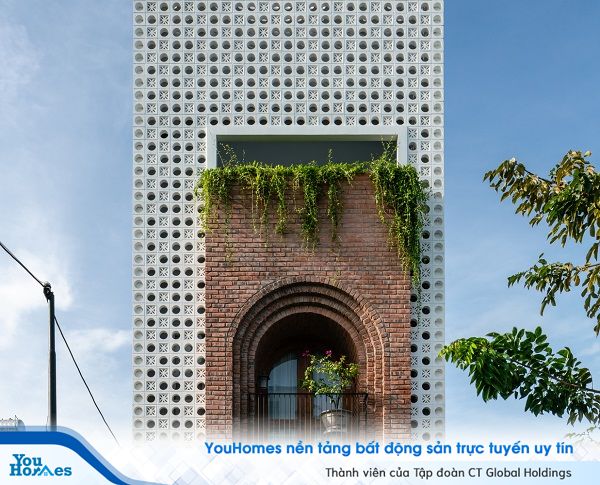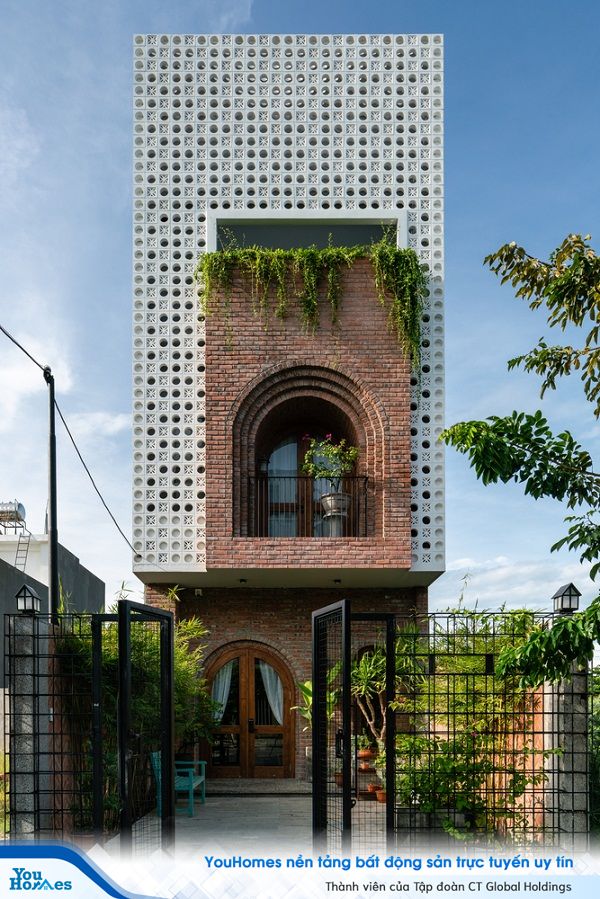 Ngôi nhà nổi bật trong không gian sống tại khu đô thị mới Hòa Xuân, Cẩm Lệ, Đà Nẵng. Các viên gạch bông gió với gam màu trắng được ốp ở mặt trước giúp mặt tiền căn hộ trở nên độc đáo, không gian xanh trong ngôi nhà rất được chú trọng với khu vườn cây um tùm phía dưới khoảng sân trước cửa chính cùng với ghế gỗ nghỉ ngơi tạo nên một không gian đẹp tựa tranh vẽ.