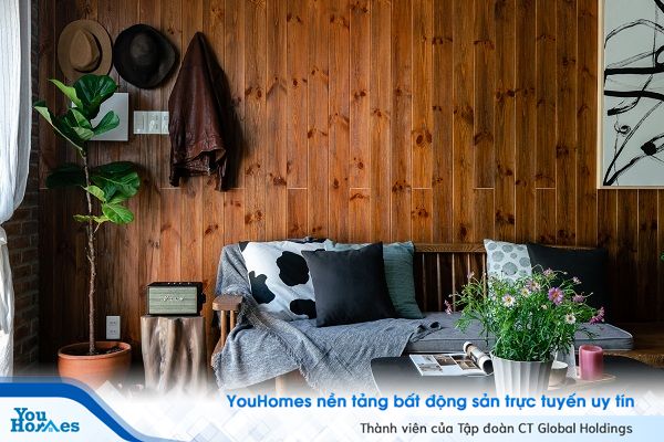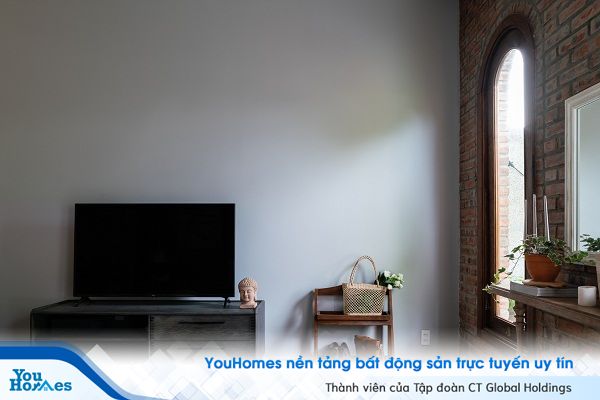 Phòng khách được thiết kế khá đơn giản nhưng lại mang đậm dấu ấn của chủ nhà. Mộc mạc, giản dị nhưng lại có chất riêng. Chủ nhà cũng lựa chọn mẫu tivi kích thước nhỏ để phù hợp với các bố trí tại phòng khách. Chiếc loa mang đậm chất hoài cổ giúp nổi bật lên cá tính riêng của chủ nhà.