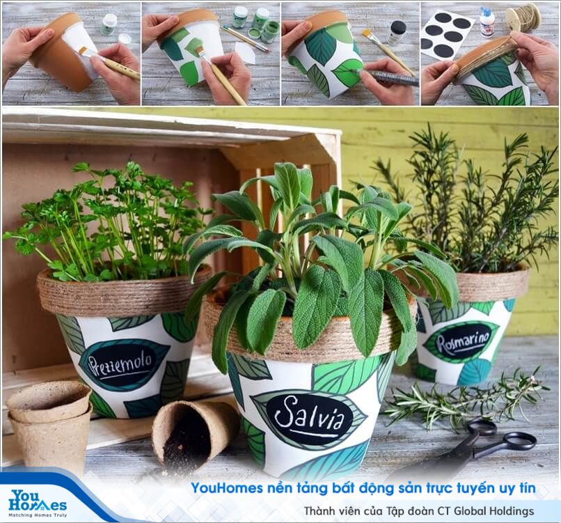 Cây xanh không chỉ giúp căn hộ có không khí trong lành mà còn là người bạn mang lại niềm vui cho gia chủ khi chăm sóc chúng. Những chậu hoa đẹp mắt sẽ là đồ vật khiến những chiếc cây trở nên sinh động hơn. Bởi vậy, thay vì sử dụng chậu cảnh đơn giản thi bạn có thể trang trí cho chậu cây thêm xinh xắn.