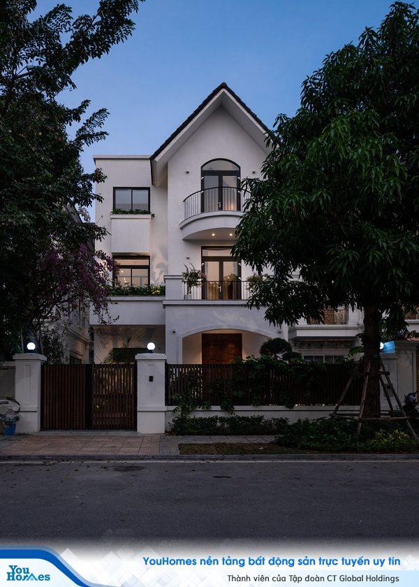 Căn biệt thự 3 tầng nằm tại một khu đô thị cao cấp tại Hà Nội với tông màu chủ đạo là trắng, bao xung quanh ngôi nhà là không gian cây xanh thoáng mát và trong lành. Ngoài ra trên các bậu cửa sổ của ngôi nhà, chủ nhà cũng bố trí thêm nhiều những chậu cây nhỏ nhắn giúp ngôi biệt thự trở nên tự nhiên và có sức sống hơn.