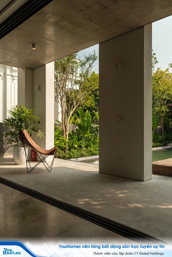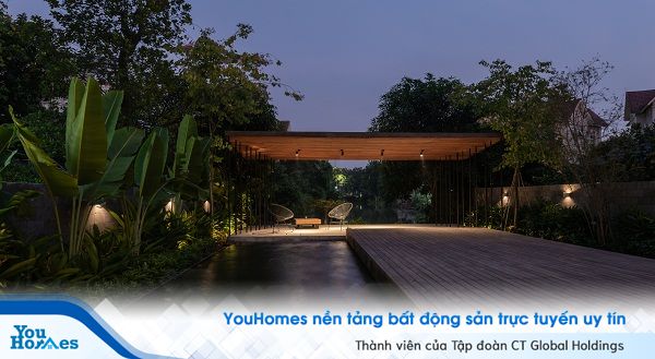 Phần sân vườn tuyệt đẹp với view hồ. Thiết kế phần bàn uống nước ở không gian mênh mông nước giúp người sử dụng có được nơi ngả lưng tuyệt vời mỗi ngày.