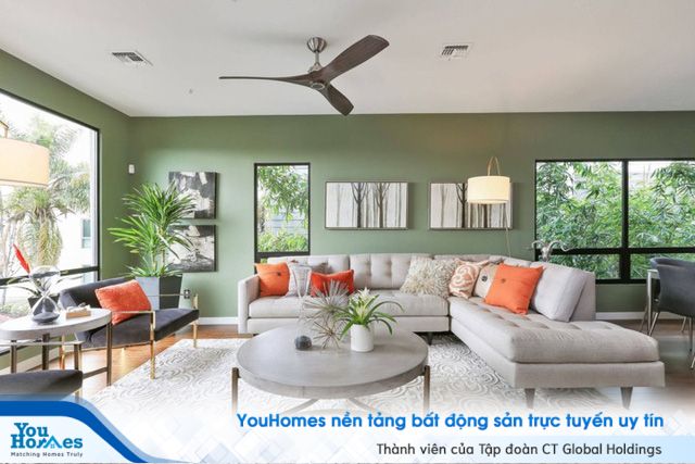 Là một tín đồ của xanh lá nhưng bạn lại không muốn căn phòng quá nổi trội, chói lóa thì mẫu phòng khách này là sự lựa chọn hoàn hảo cho bạn. Không gian thoáng đãng, dịu nhẹ với sắc xanh vừa phải. Thảm trải sản và bộ sofa trắng hiện đại đã giúp trung hòa không gian của phòng khách. Khung cảnh thiên nhiên tràn ngập gần phòng khách có cửa sổ và cửa ra vào hướng ra khu vườn.