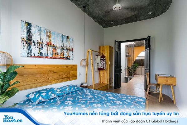 Phòng ngủ thứ 2 mang phong cách hiện đại, một sự đối lập không gian hai phòng tạo nên màu sắc độc đáo.