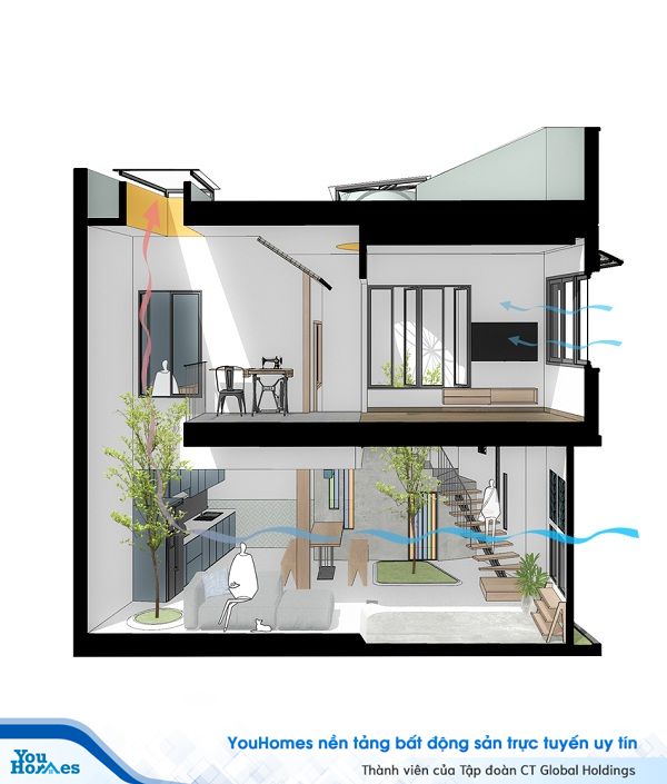 Căn nhà vừa kín đáo vừa tận dụng được ánh sáng mặt trời nhờ thiết kế hợp lý.