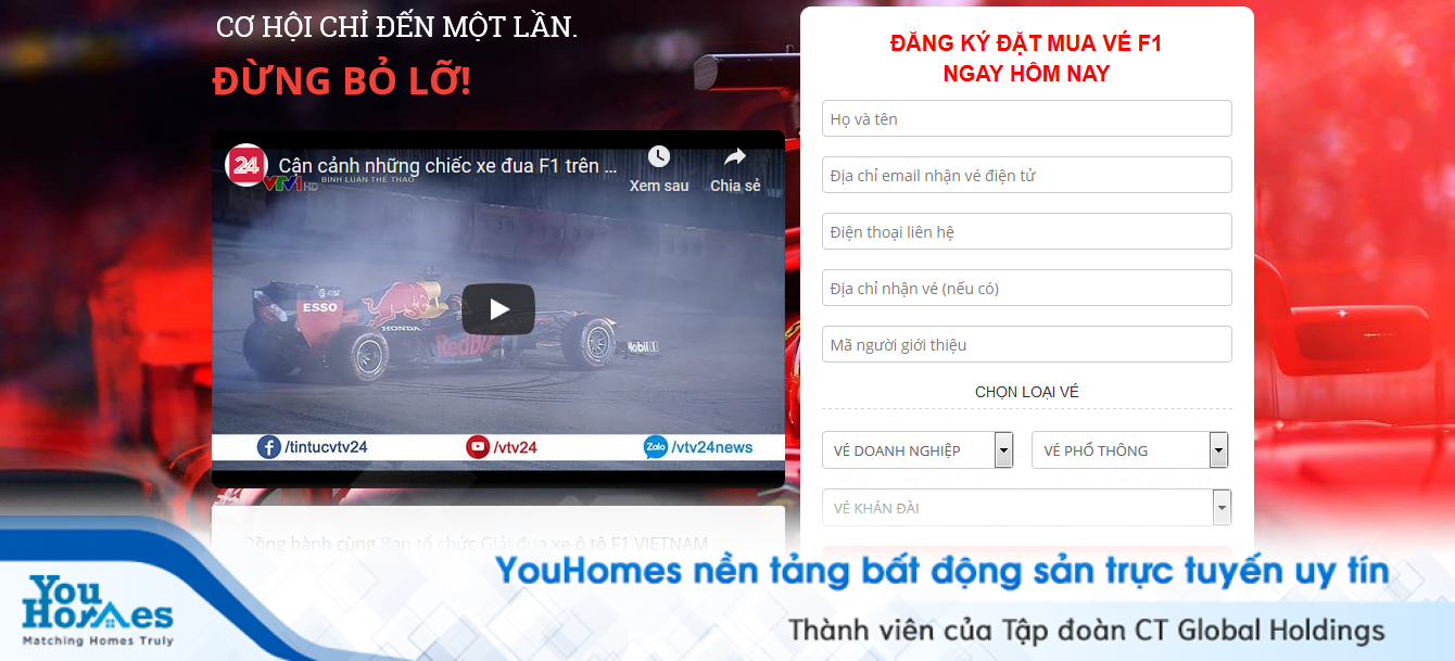 Đặt mua vé F1 rinh quà hot cùng YouHomes