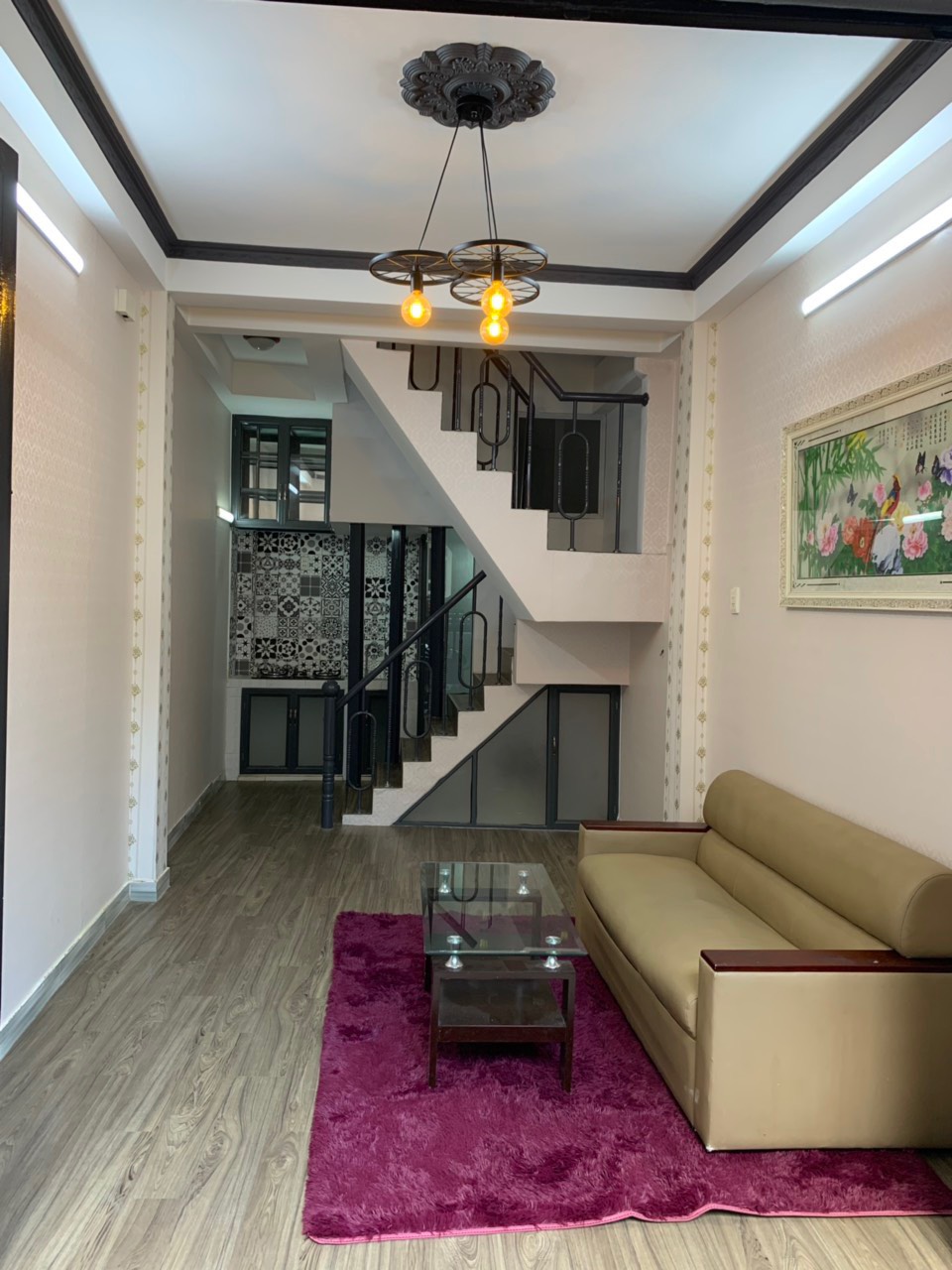 Thiết kế gồm 1 phòng khách, bếp, 3 phòng ngủ, 4wc, phòng thờ. Mỗi tầng lầu đều có ban công và cửa sổ thoáng mát, máy lạnh từng phòng, nội thất cao cấp. Nhà đang cho thuê 10 triệu/tháng.
