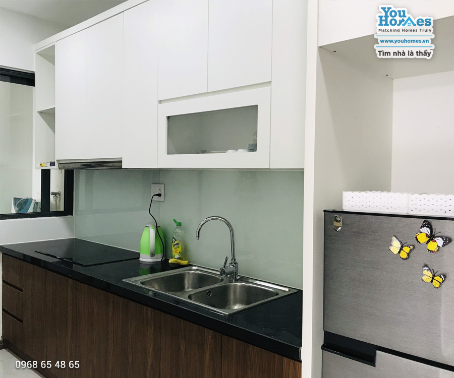 Nội thất: Full nội thất cơ bản + smart door cửa thẻ từ vân tay + 2 máy lạnh, 2 quạt trần, tủ lạnh + full thiết bị nhà bếp + full thiết bị phòng tắm