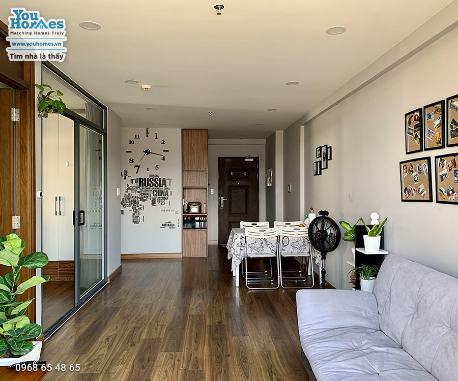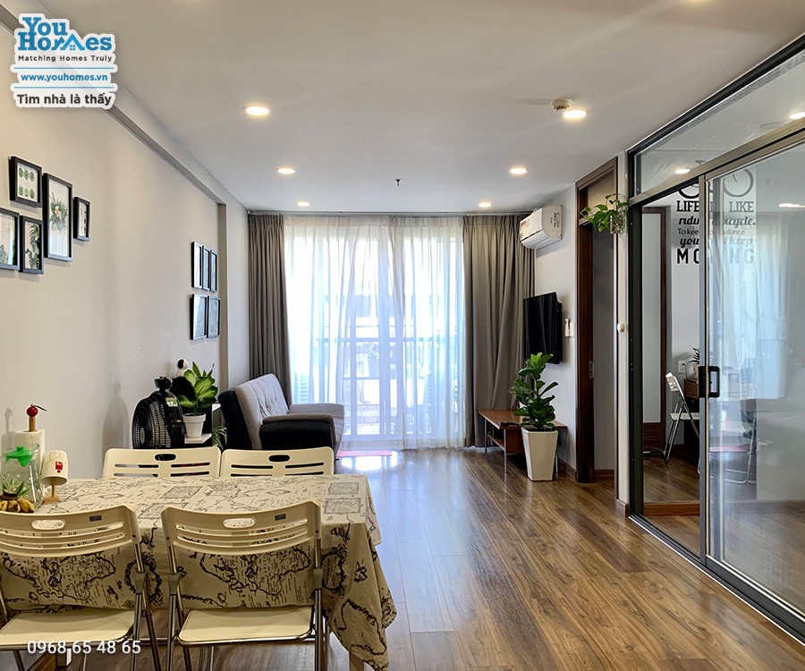 Căn có 2 phòng ngủ, diện tích tim tường 76,9m2, thông thủy 71,5m. Căn góc, thiết kế hiện đại, đơn giản, tận dụng mọi không gian, đầy đủ nội thất cao cấp, có ô đậu xe hơi riêng. Hướng cửa chính Tây-Bắc, Hướng ban công Đông-Nam thoáng mát. Gió tự nhiên cả ngày.
