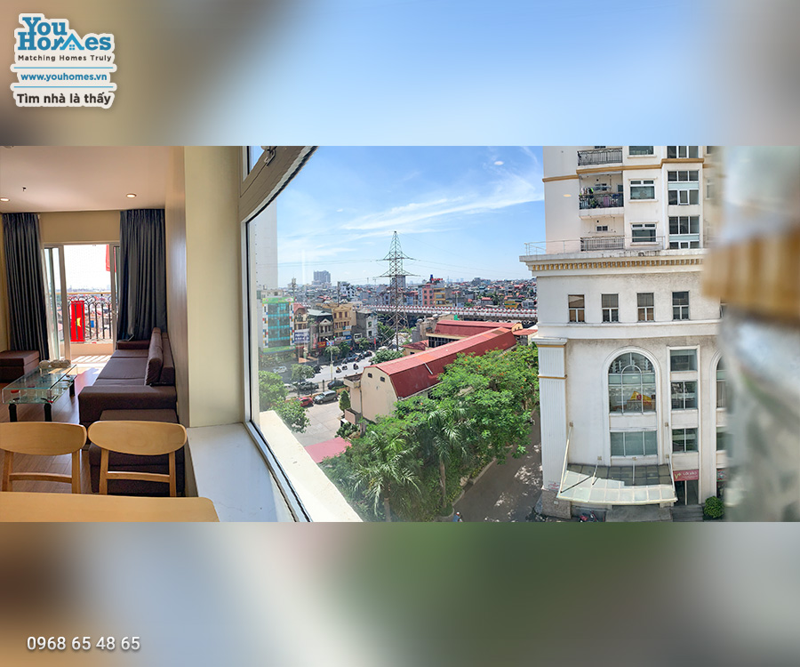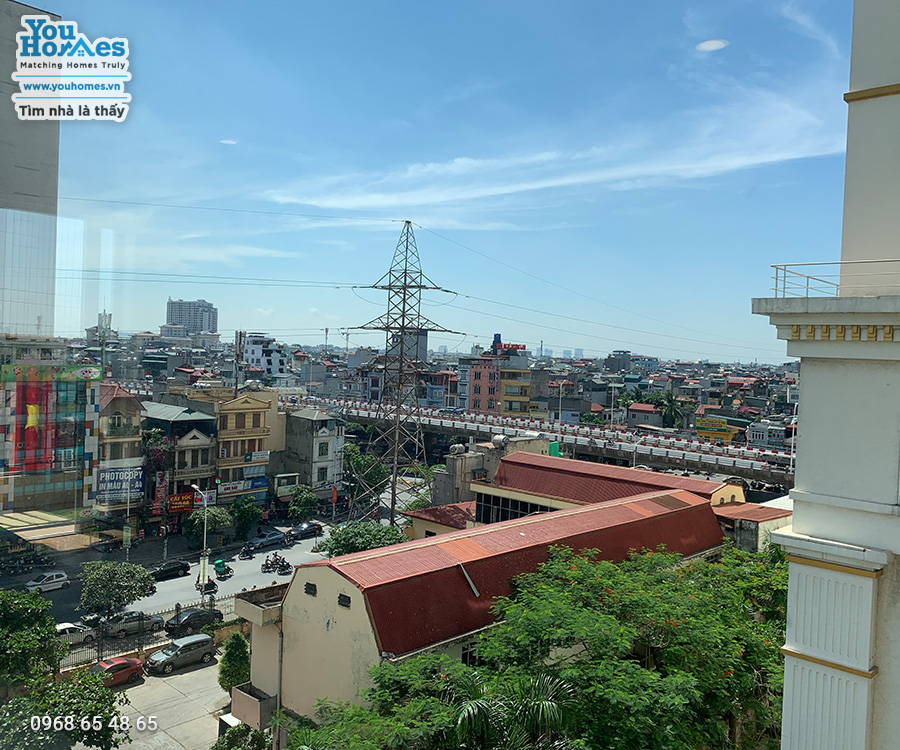 - Ban công hướng Đông nhìn ra cầu Vĩnh Tuy bắc qua sông Hồng.