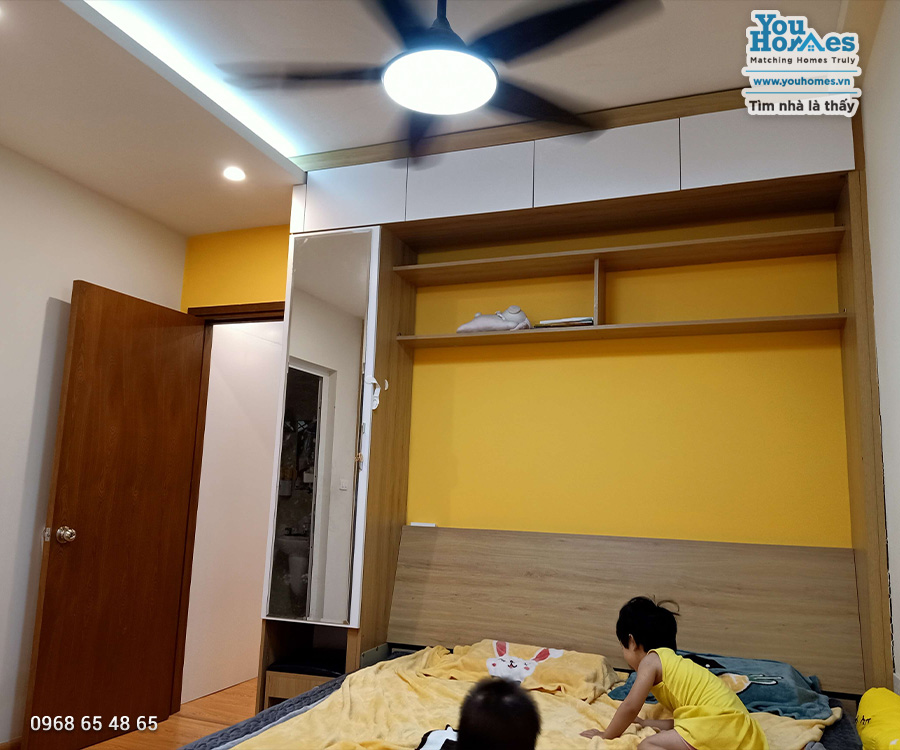 Căn hộ đã có full nội thất thông minh đầy đủ tiện nghi, sẽ để lại toàn bộ cho chủ mới. Căn hộ phù hợp với gia đình nhiều người, có con nhỏ với thiết kế không gian mở và nhiều ngăn để đồ ở phòng khách, thiết kế sập cao vừa có tủ âm để đồ vừa có bàn âm. Có view nhìn ra hồ Yên Sở rất đẹp, ngồi bàn trà và ngắm cảnh, check in, hay hâm nóng tình cảm vợ chồng càng tuyệt vời.