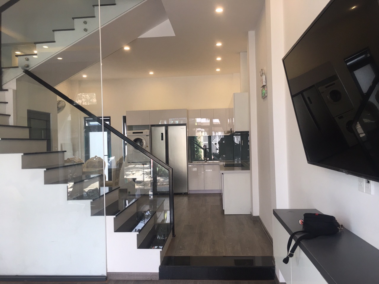 Nhà 3 tầng đẹp với đầy đủ nội thất hiện đại gồm 4 phòng ngủ, 5WC, phòng khách.