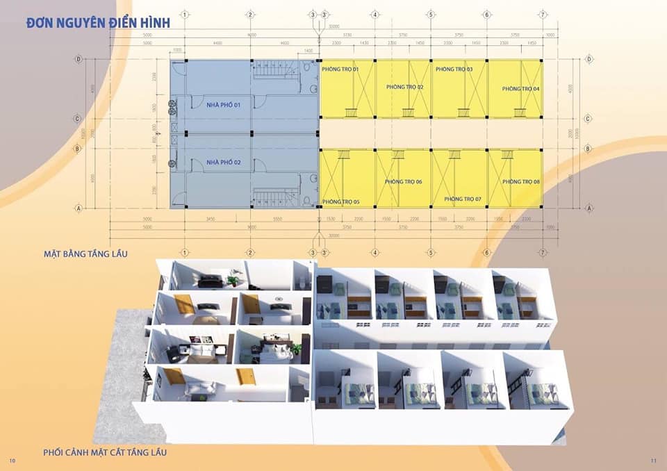 Gồm 2 phòng ngủ, 1 phòng khách 1 bếp và 2 phòng vệ sinh.