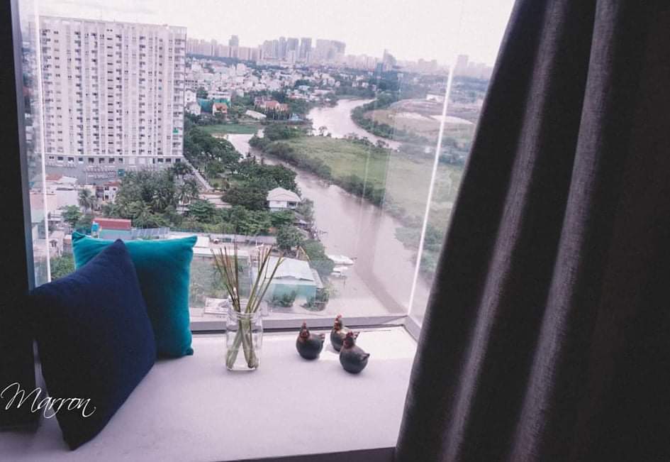 Nhà ở lầu cao thoáng mát, với 2 phòng ngủ và 2 toilet, đã lót ván sàn (như ảnh cuối). Kính được dán toàn bộ phim cách nhiệt và tia UV, kèm theo một bộ màn vải cao cấp nên rất dịu mắt và mát mẻ.
