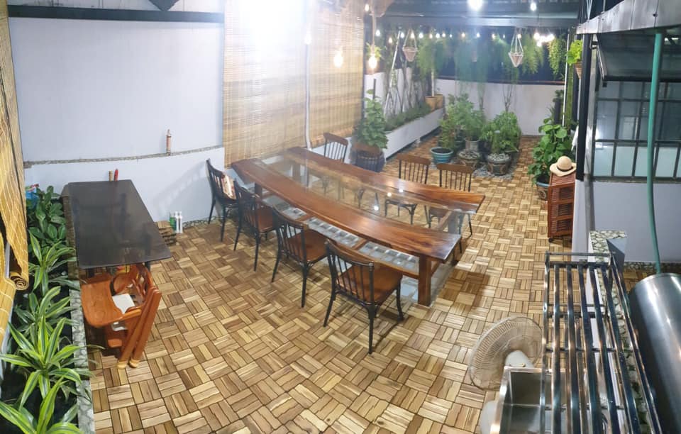 Trên cùng là sân thượng rộng suốt, có bàn ăn, cây xanh mát rượi. Tối mát uống trà hay BBQ là nhất đời.