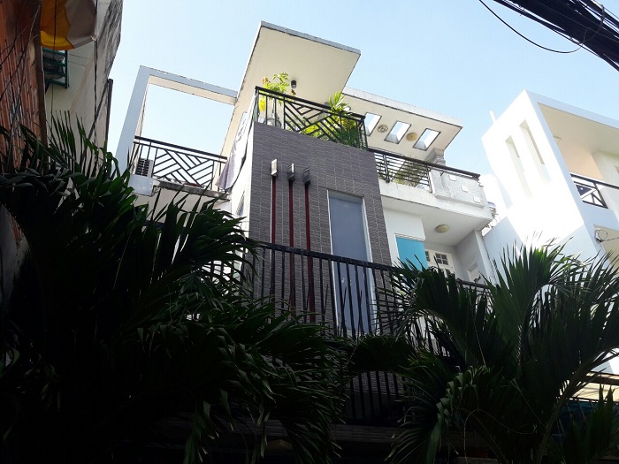 Nhà hai lầu, sân thượng lớn, bốn phòng ngủ, bốn phòng vệ sinh.