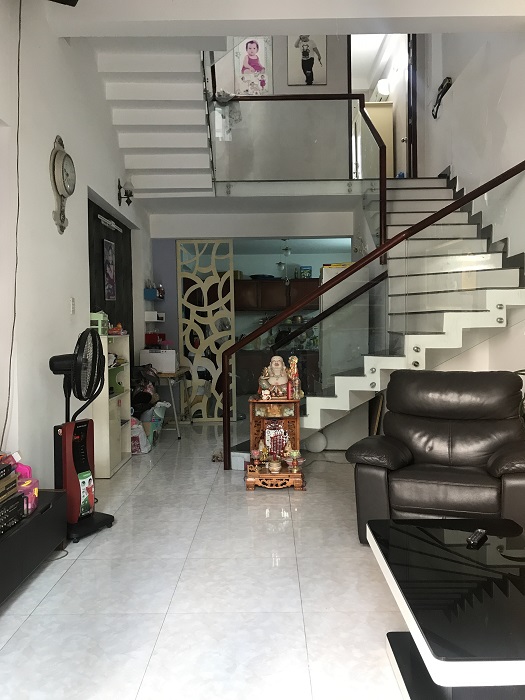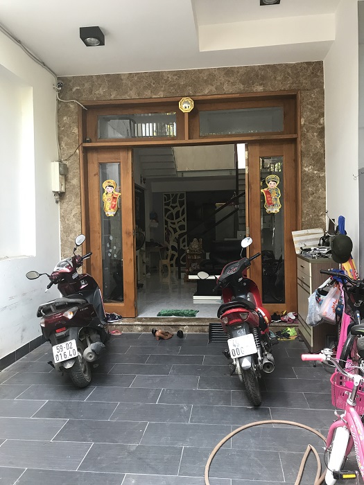 Nhà hướng nam, xây kiểu lệch tầng. Có sân để xe, sân sau thoáng mát, dân cư hiện hữu, an ninh tốt.