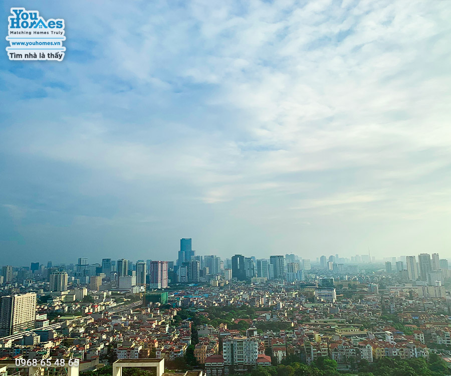 Căn hộ tầng cao rất thoáng, tránh ồn và khói bụi, có 2 ban công: ban công chính hướng Nam, view trực tiếp ra đường lớn, tầm nhìn thoáng, ban công phòng ăn hướng Tây.
