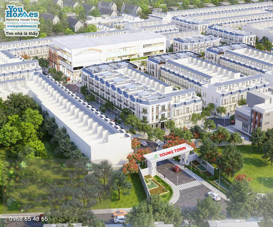 Nhà phố thương mại Young Town được thiết kế theo trường phái bán cổ điển Châu Âu. Những dãy phố thương mại tiện nghi, không gian sống khoa học có thể đón ánh sáng tràn ngập và không khí trong lành
